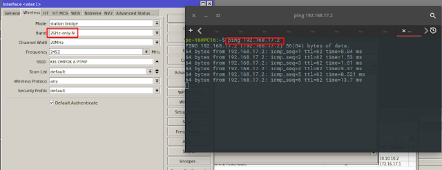 - Kemudian coba Ping antar Wireless, Jika berhasil Coba ping ke Client.